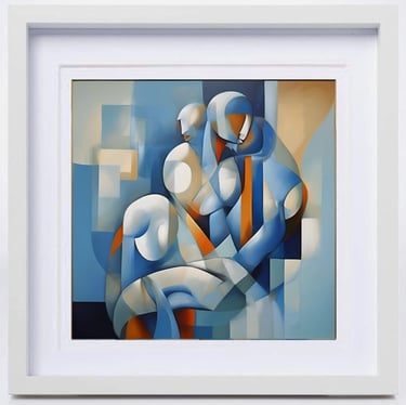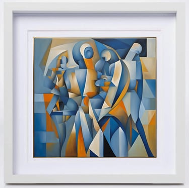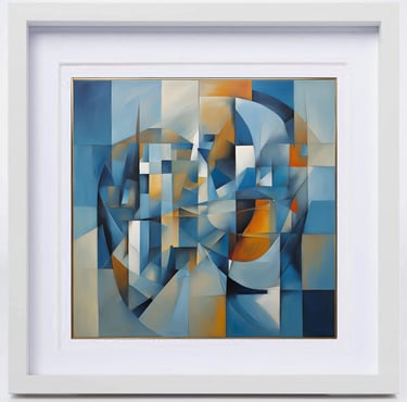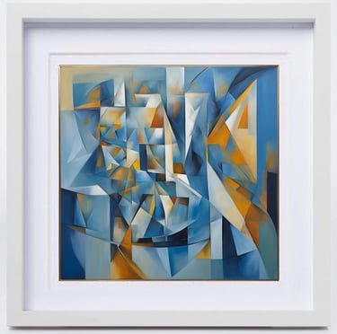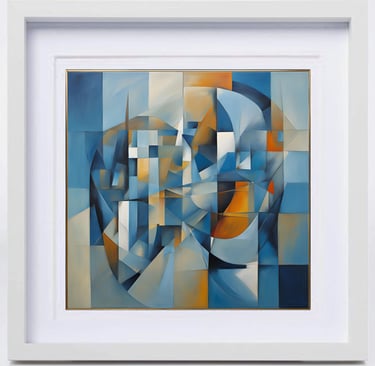 The series "Beauty of Nature in Abstraction" is a powerful testament to his artistic journey. These works, in shades of blue, ochre, and white, are not merely geometric arrangements but evoke the rhythm of balance between human emotions and the cosmic order. In this series of works, human-like figures emerge from a symphony of angular and curved planes; the indescribable shapes, sculpted from intersecting blocks of color, invite the viewer to see humanity as a collective consciousness rather than as individuals. This exploration deepens in the second work, where fragmented planes overlap like crystalline reflections, dissolving a physical landscape into pure energy. The delicate play of light and shadow within angular geometry suggests both fragility and resilience, echoing the constantly changing yet eternal nature of nature. Finally, in another painting, circular movements intersect with rigid geometric lines, symbolizing continuity within the composition. The flowing rhythms on the canvas become a metaphor for the cycles of life birth, transformation, and renewal providing a balance between stillness and movement, freedom and order, the temporal and the infinite. Viewed together, these three works form a meditative trilogy that reflects the artist's philosophy: abstraction as a bridge between human experience and cosmic truth.