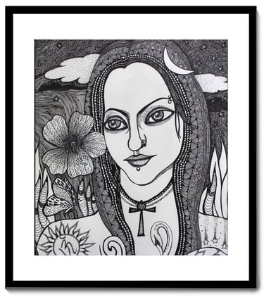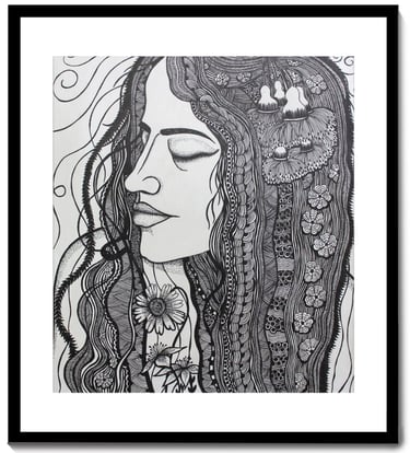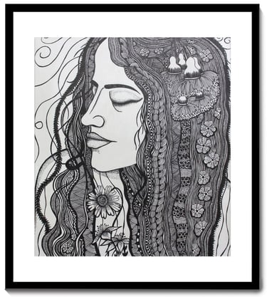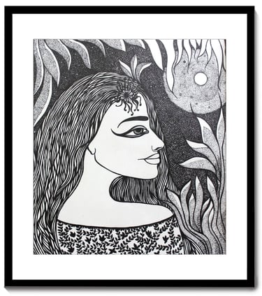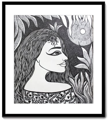Karuna Ahluwalia is a Delhi-based contemporary artist whose creative journey is deeply rooted in her academic training and personal philosophy. With a Bachelor of Fine Arts in Painting and a Master’s in Art History, Karuna has consistently explored the power of visual storytelling through her distinctive artistic language. Her artworks are a profound reflection of human sensitivity and emotion, seamlessly intertwined with the rhythms of nature. For Karuna, nature is not just an element of inspiration but a constant companion an empathetic presence that understands emotions and offers joy, healing, and meditative calm. This deep relationship manifests strongly in her intricate compositions where faces emerge in harmony with flowers, foliage, moonlight, and symbolic patterns, echoing the eternal dialogue between the human spirit and the natural world. Her detailed pen-and-ink drawings, adorned with botanical motifs, flowing textures, and symbolic elements, reveal her unique ability to merge personal expression with universal truths of life, emotion, and interconnections.